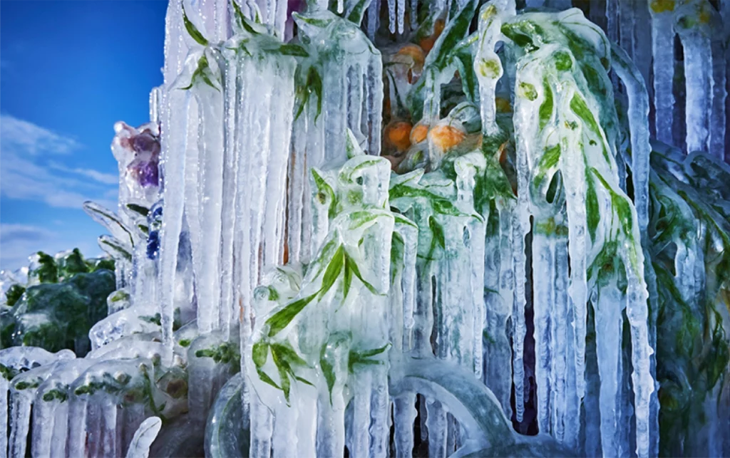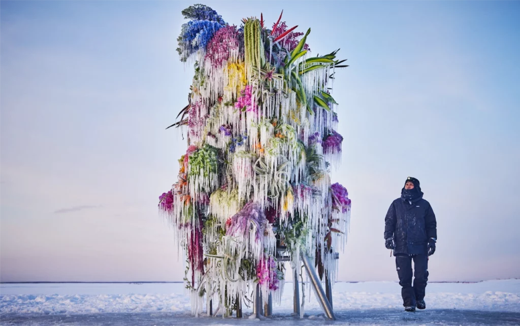 Hypebeast / Designboom –Archives visuelles et techniques sur la série « Frozen Flowers » réalisée à Hokkaido.